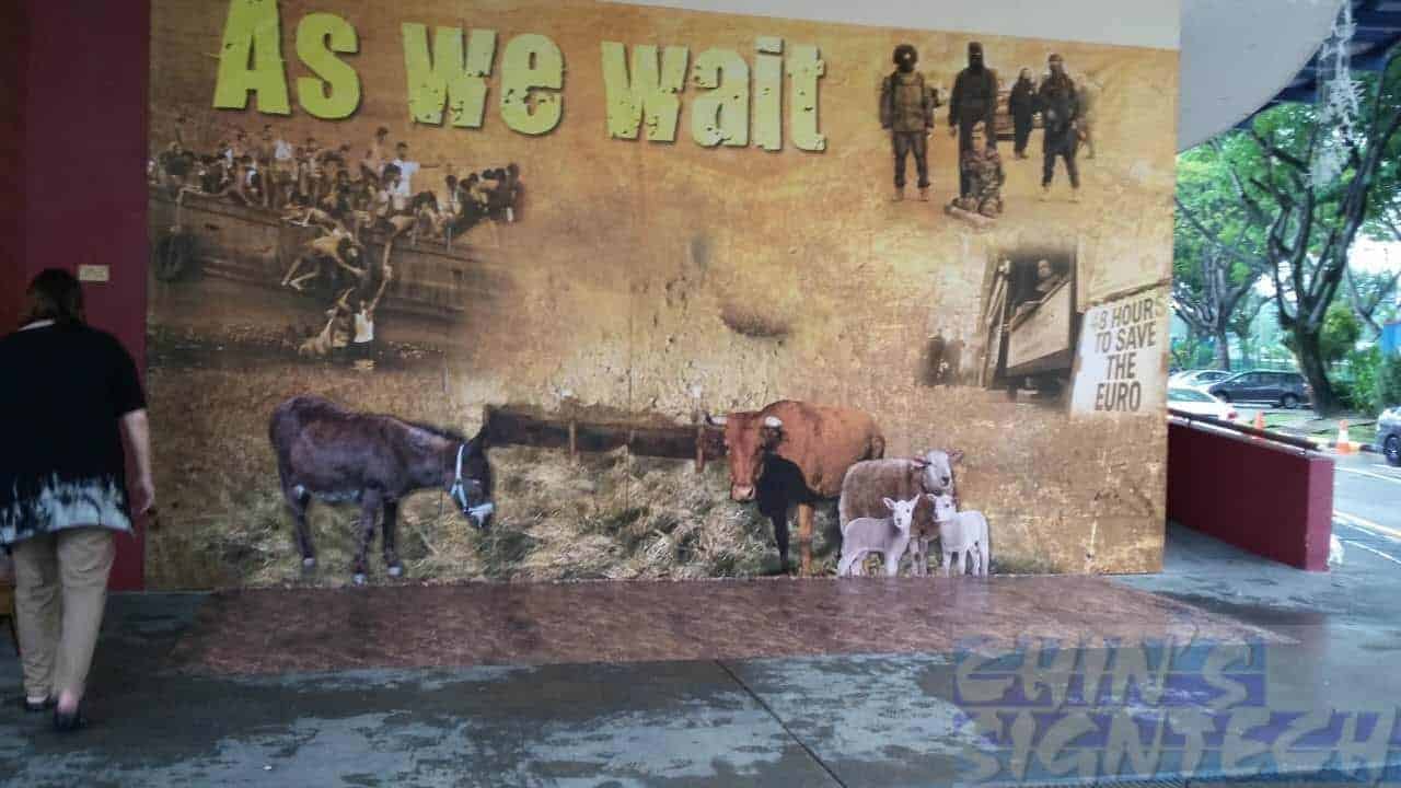 We also do wall mural with PVC banner installed onto wall and with floor sticker. We like to provide cheap and presentable products to customers.