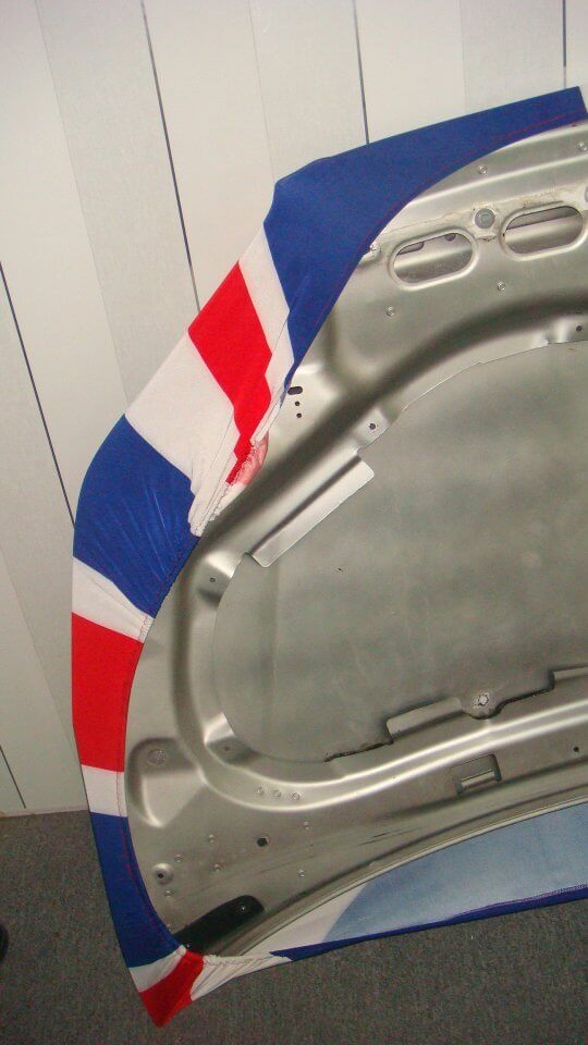 Decorate your Car Hood with fabric wrap. Quick and easy installing with elastic cord sewn onto fabric.