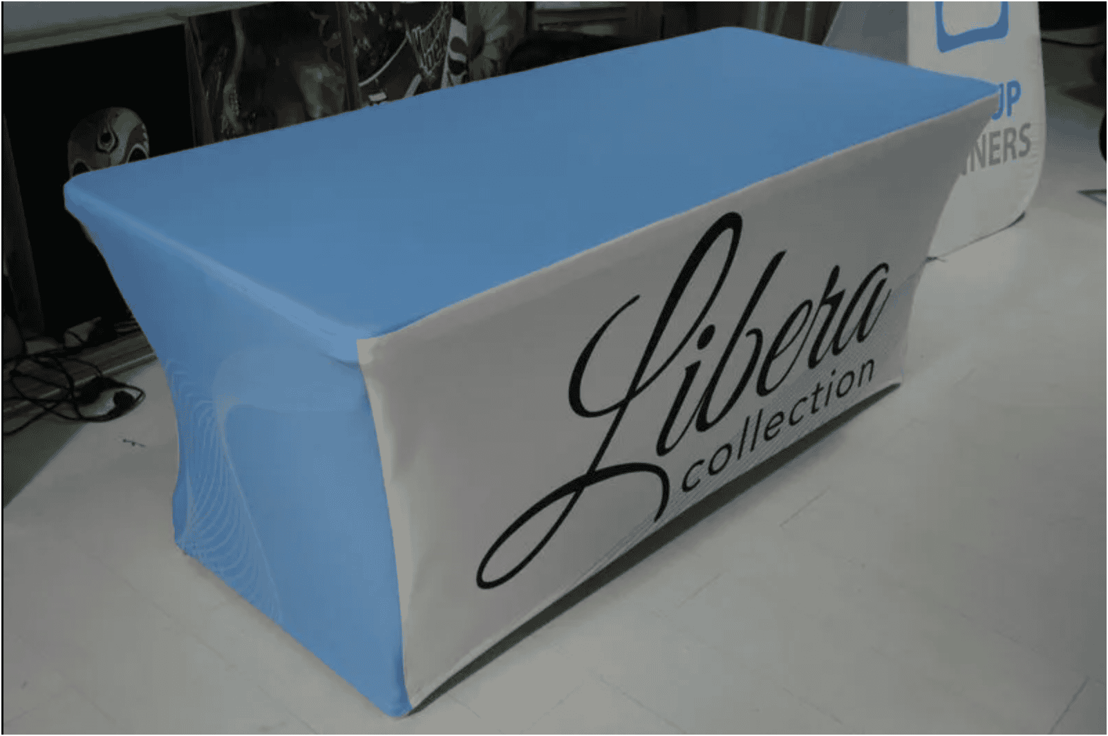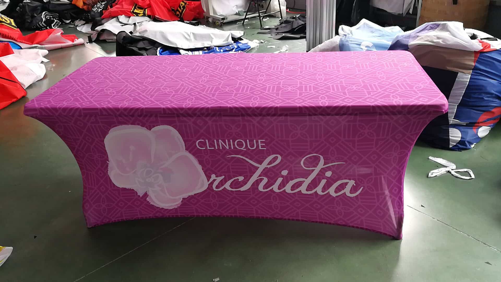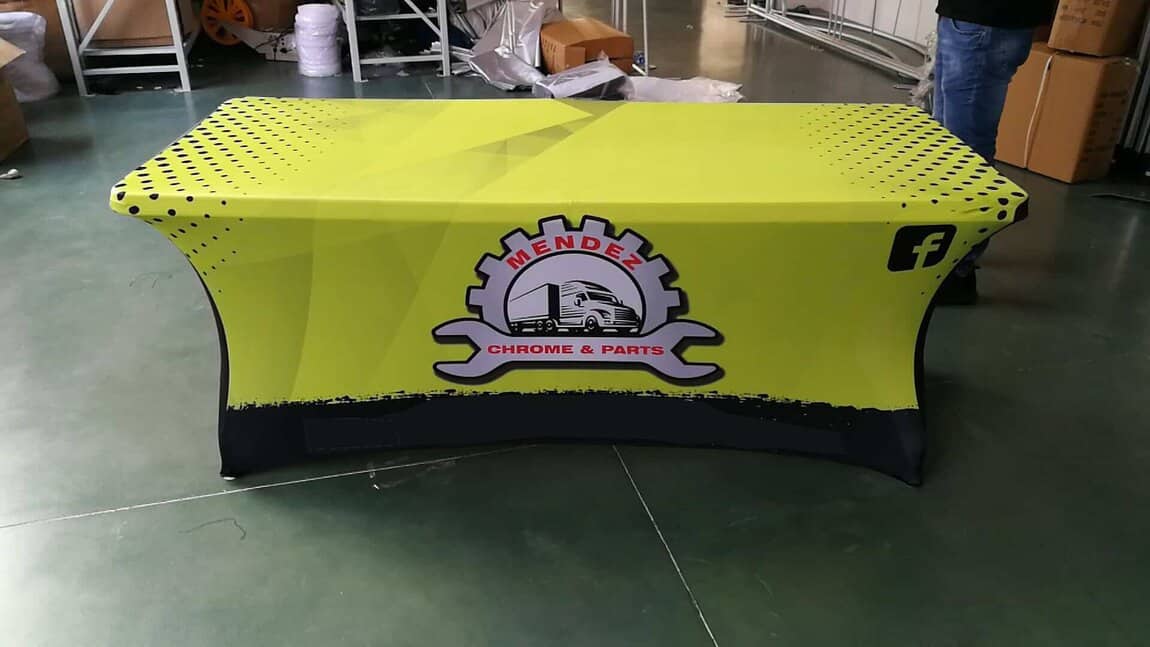 We provide bespoke brand and logo printing on Customised Spandex Table Cover.