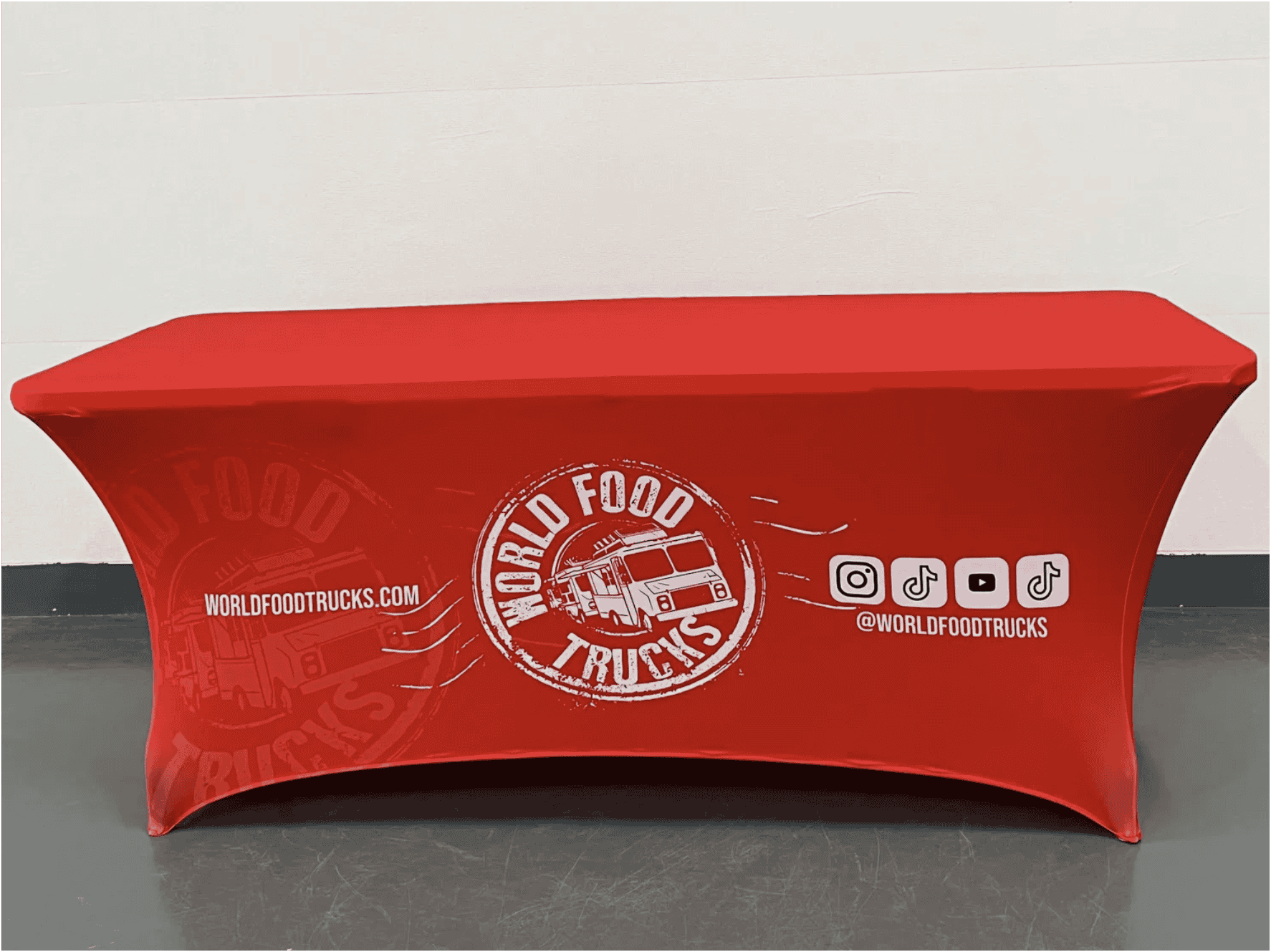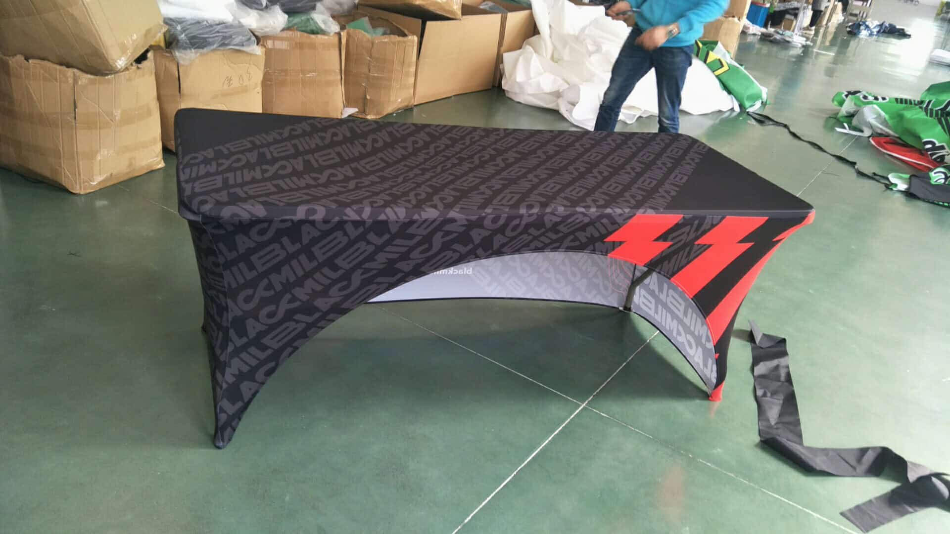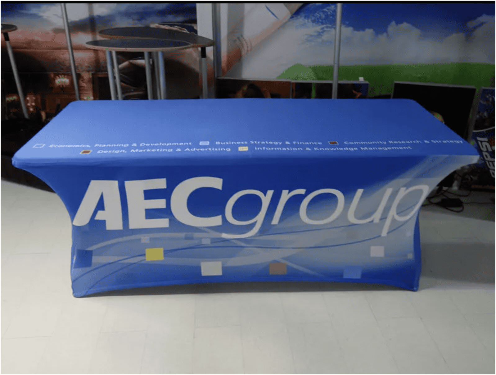 We provide bespoke brand and logo printing on Customised Spandex Table Cover.