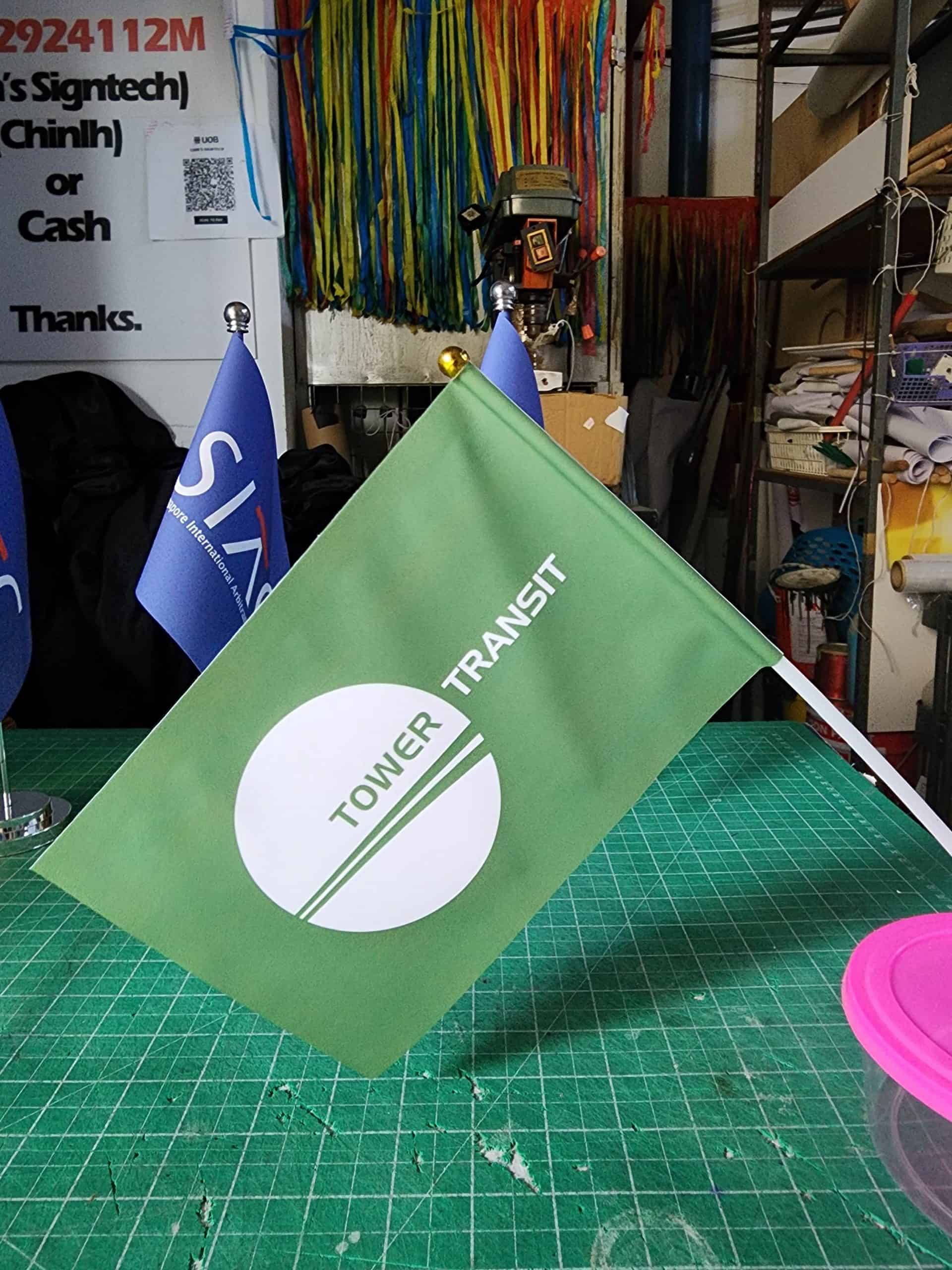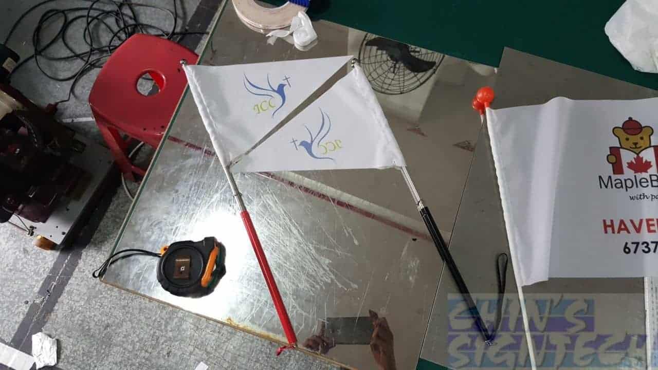 Custom hand flags or banners can be made any size as you want. We offer some common sizes for quick order, come with white plastic or wooden pole with Gold tip and printed on light weighted fabric.