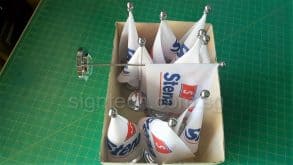 - Table flag size is A5 size (measures 148 x 210 millimeters, or 5.83 x 8.27 inches.)