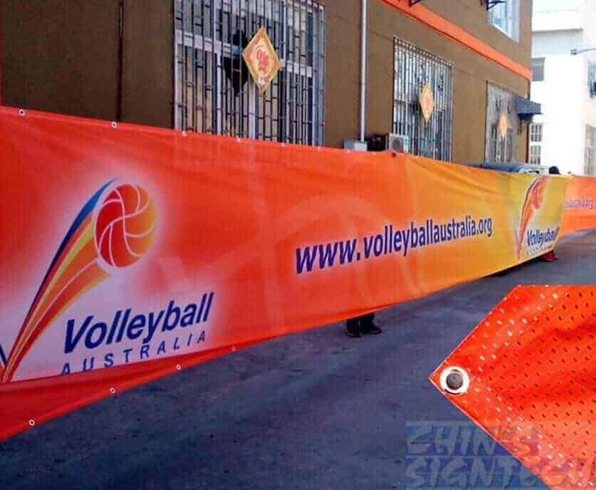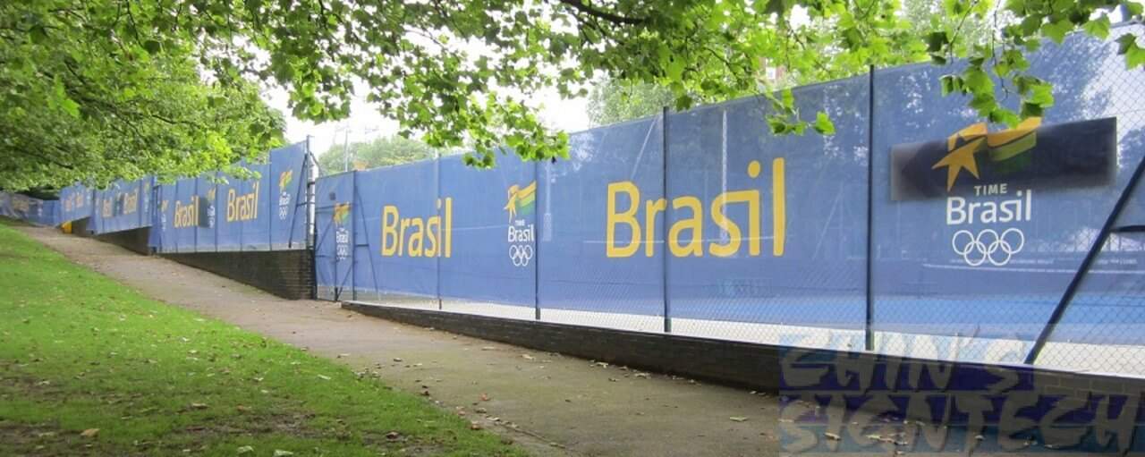 Mesh fabric banners currently use at foreign countries on their fence are popular. Due to it small holes on the light weighted fabric, wind can pass through and behind can be see through. Colour also more vivid than Mesh PVC banner.