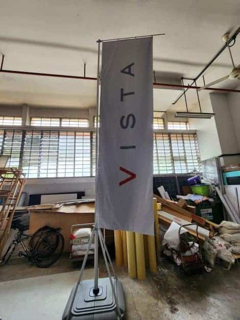 5m flag pole ——— $260++ each with printing on fabric 120*350cm / 100*350cm