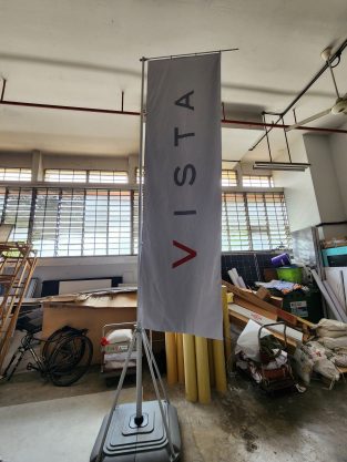 5m flag pole ——— $260++ each with printing on fabric 120*350cm / 100*350cm