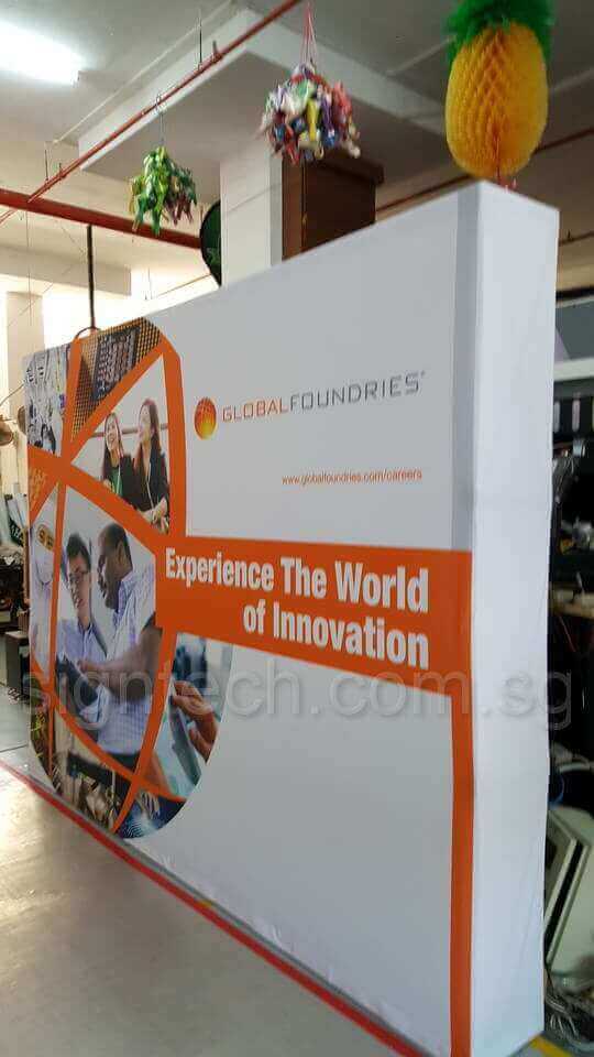 We also offer fabric display systems rental for events purpose @ $350 with printing. Self collect and return with deposit. The best part is you can keep the printing media after use.