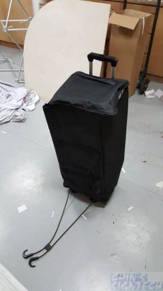 If you need trolley for easy transport on your display system, we recommend the economy portable Trolley. The bag can be placed on the trolley and tie with Bungee string with hook to the handle.