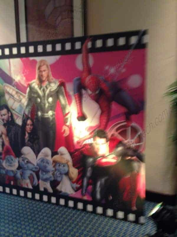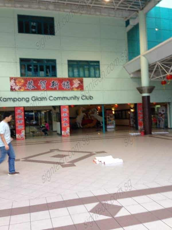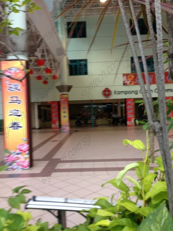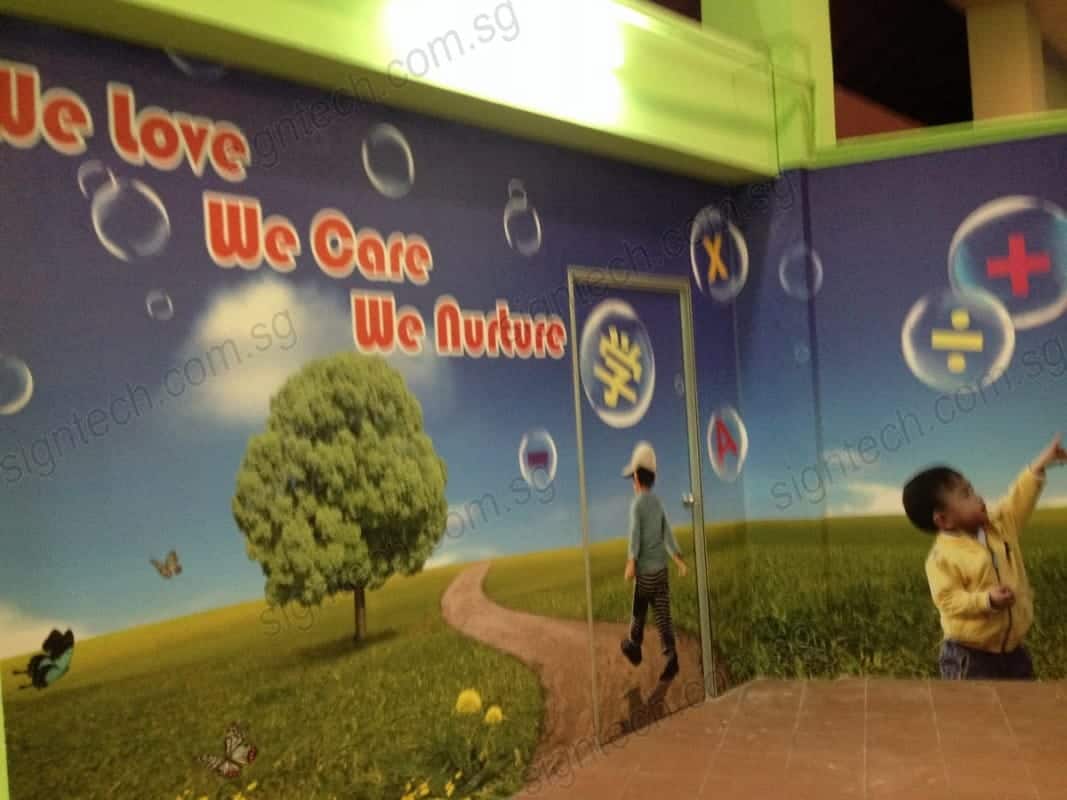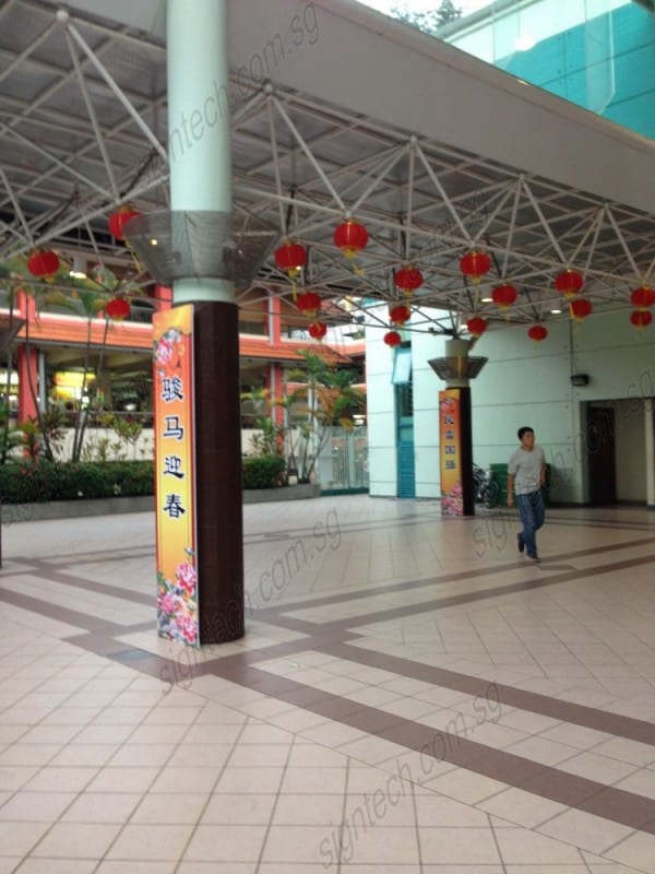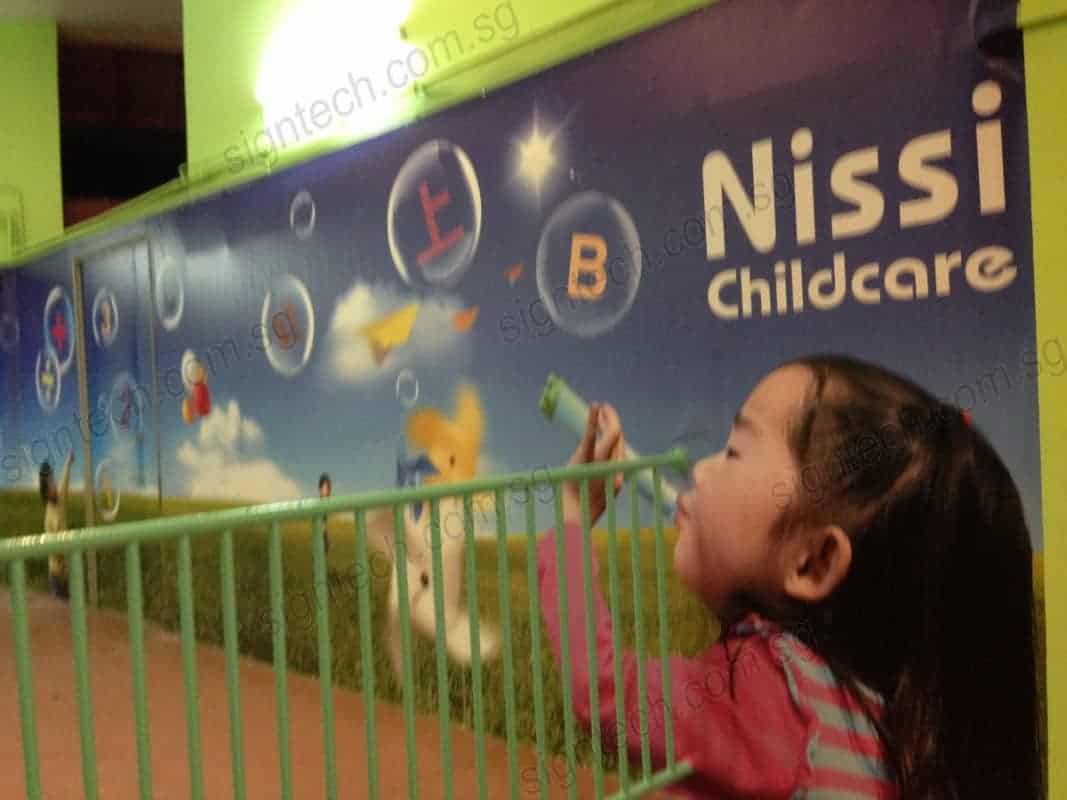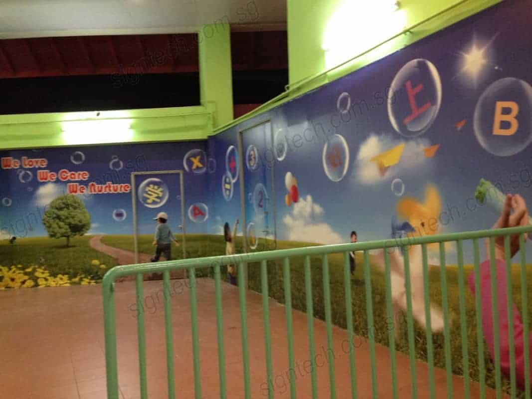 Printed on PVC banner on 3m large format printer mounted on wooden frame. Supported by metal stands behind.