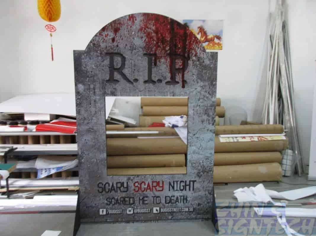 Our wood cutting for Halloween R.I.P Tombstone For BUGIS STREET