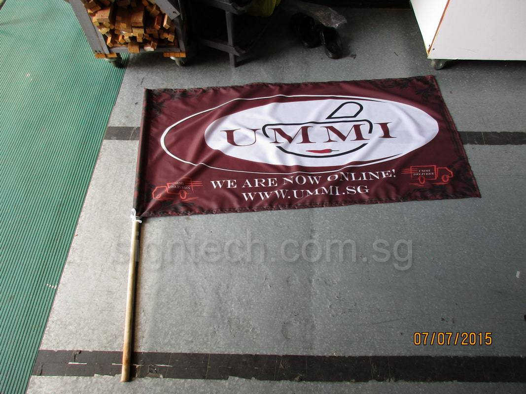 Chin’s Signtech prefer doing flags more than printing PVC banners. Stickers and posters printing we hate most, cos very ma fan and troublesome, need to laminate.